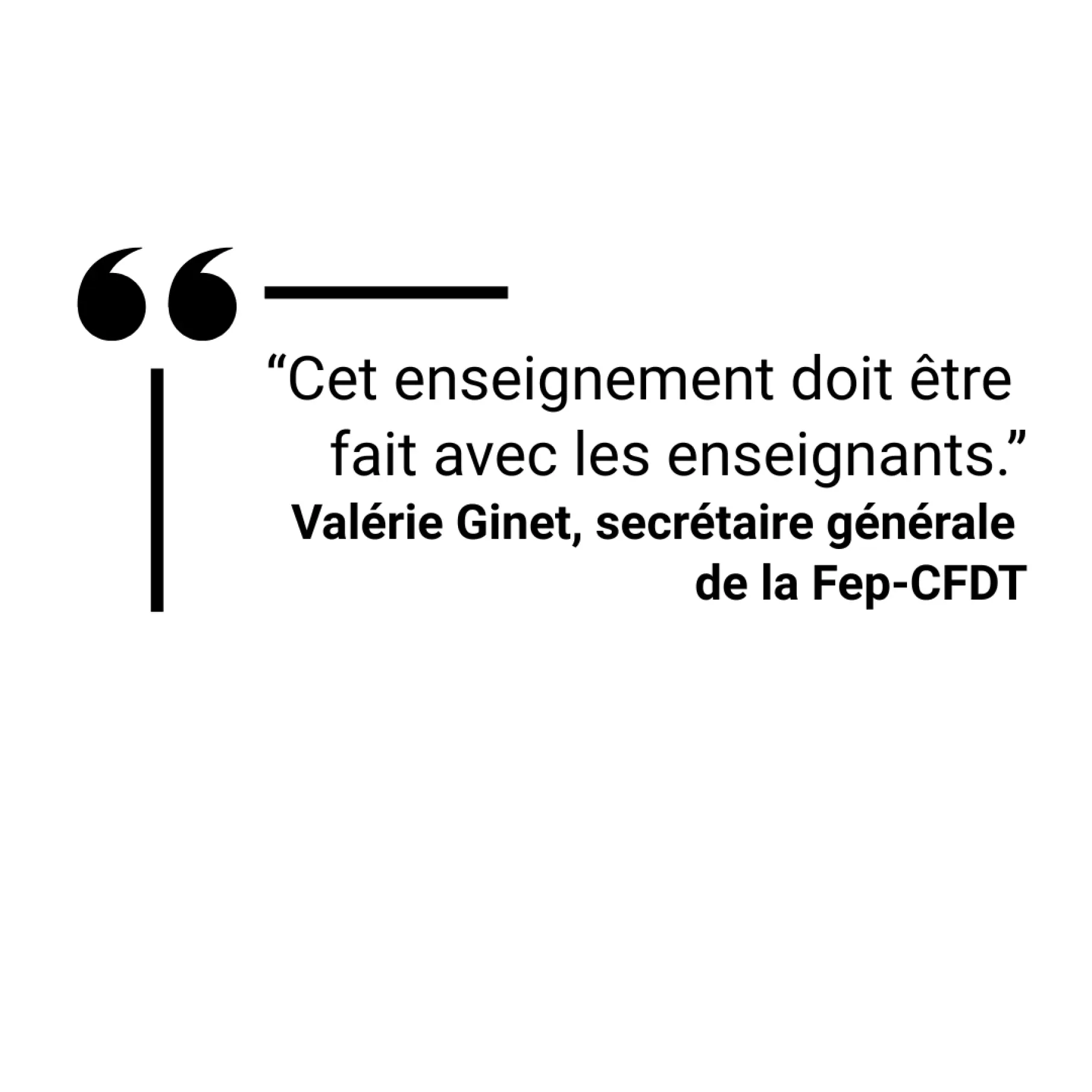 « Nous avons des inquiétudes dans la mise en place du programme d’Evars (éducation à la vie affective, relationnelle et sexuelle). Le processus de dialogue social a été pollué par la sphère politico-médiatique, par des fake news, qui ont invisibilisé les notions fondamentales et insisté sur l’orientation sexuelle, et l’identité de genre. Ceux qui ont peur du programme ne l’ont pas lu, pas compris, ou font semblant de ne pas comprendre, car cela arrange leurs intérêts politiques », déclare Valérie Ginet, secrétaire générale de la FEP-CFDT, le 12/09/2025.