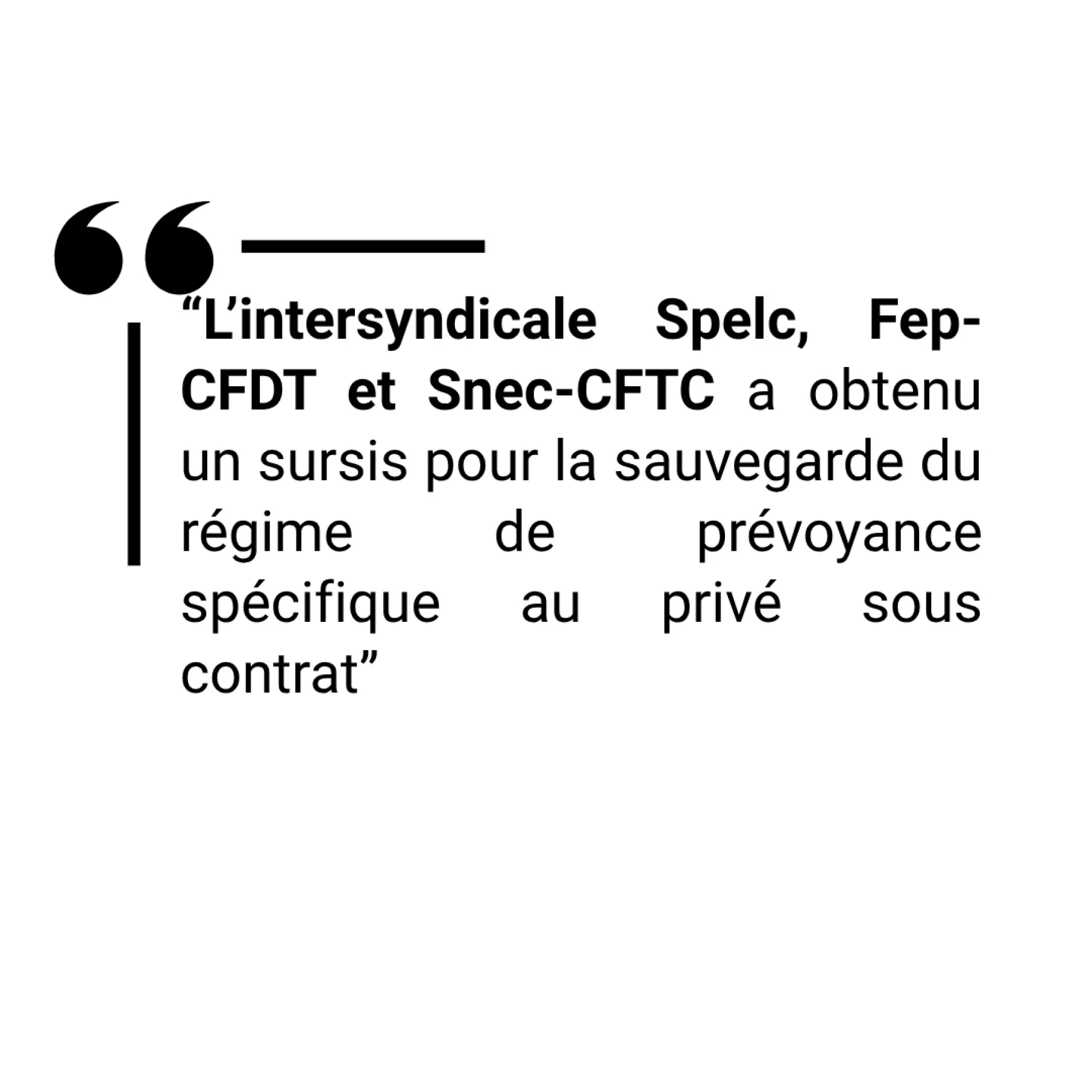 L'intersyndicale Spelc, Fep-CFDT et Snec-CFTC a obtenu un sursis pour la sauvegarde du régime de prévoyance spécifique au privé sous contrat.