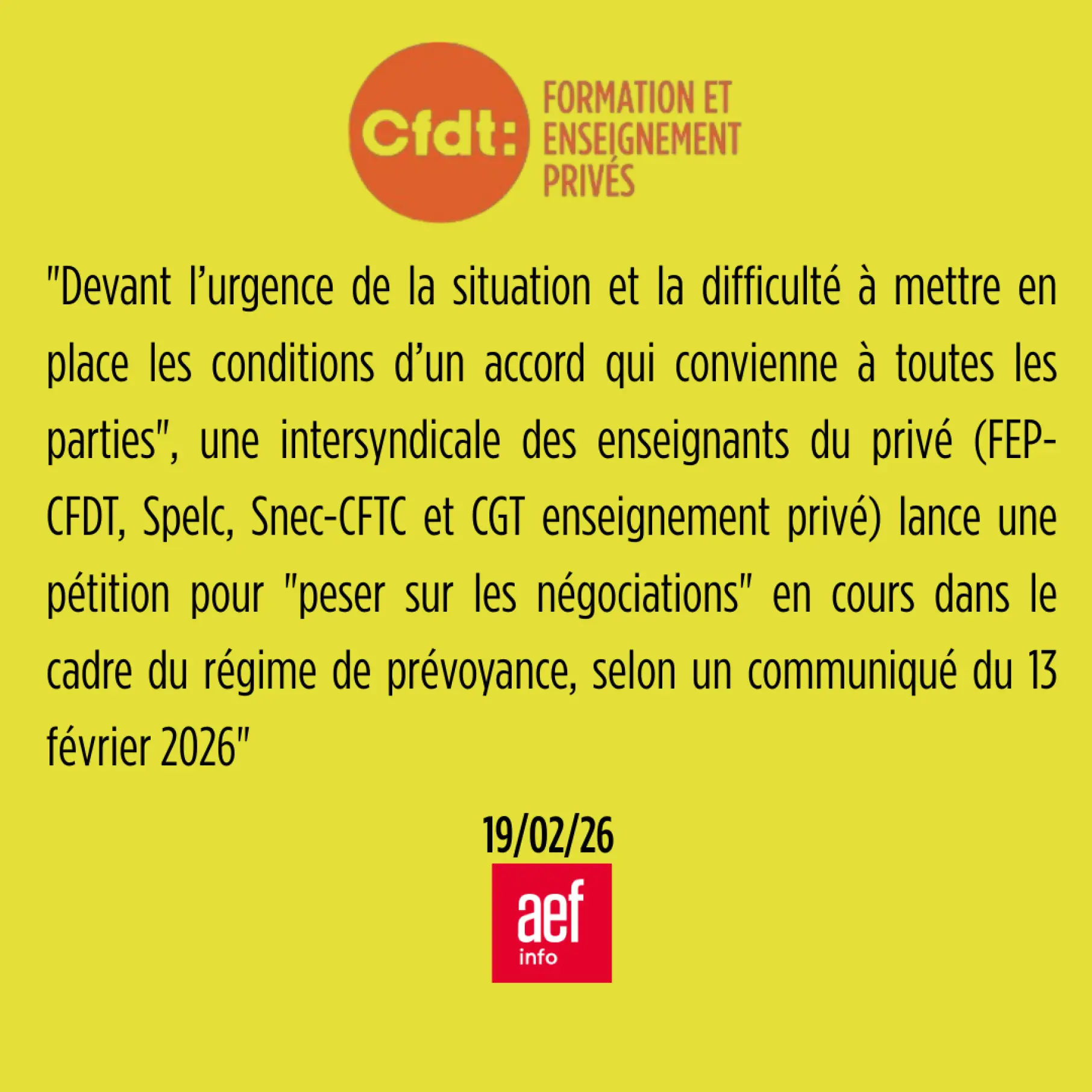 2026-02-19 - AEF INFO - Prévoyance : une intersyndicale de l'enseignement privé lance une pétition pour sauver les négociations en cours