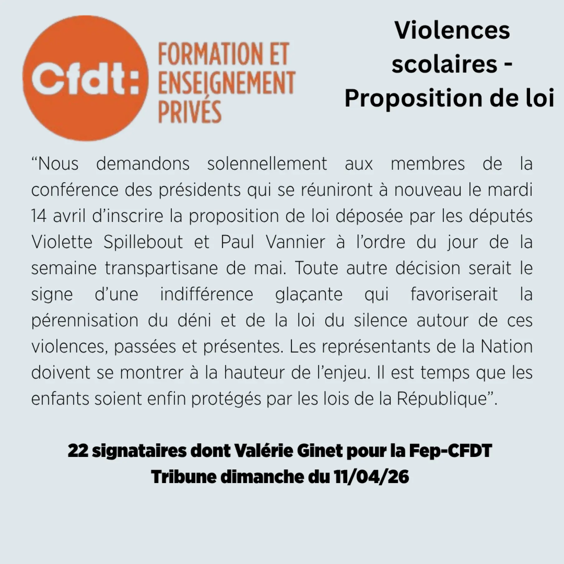 2026-04-11 - La tribune Dimanche - "Violences à l'école : le Parlement doit légiférer", par les principaux collectifs de victimes de violences dans les établissements scolaires publics et privés