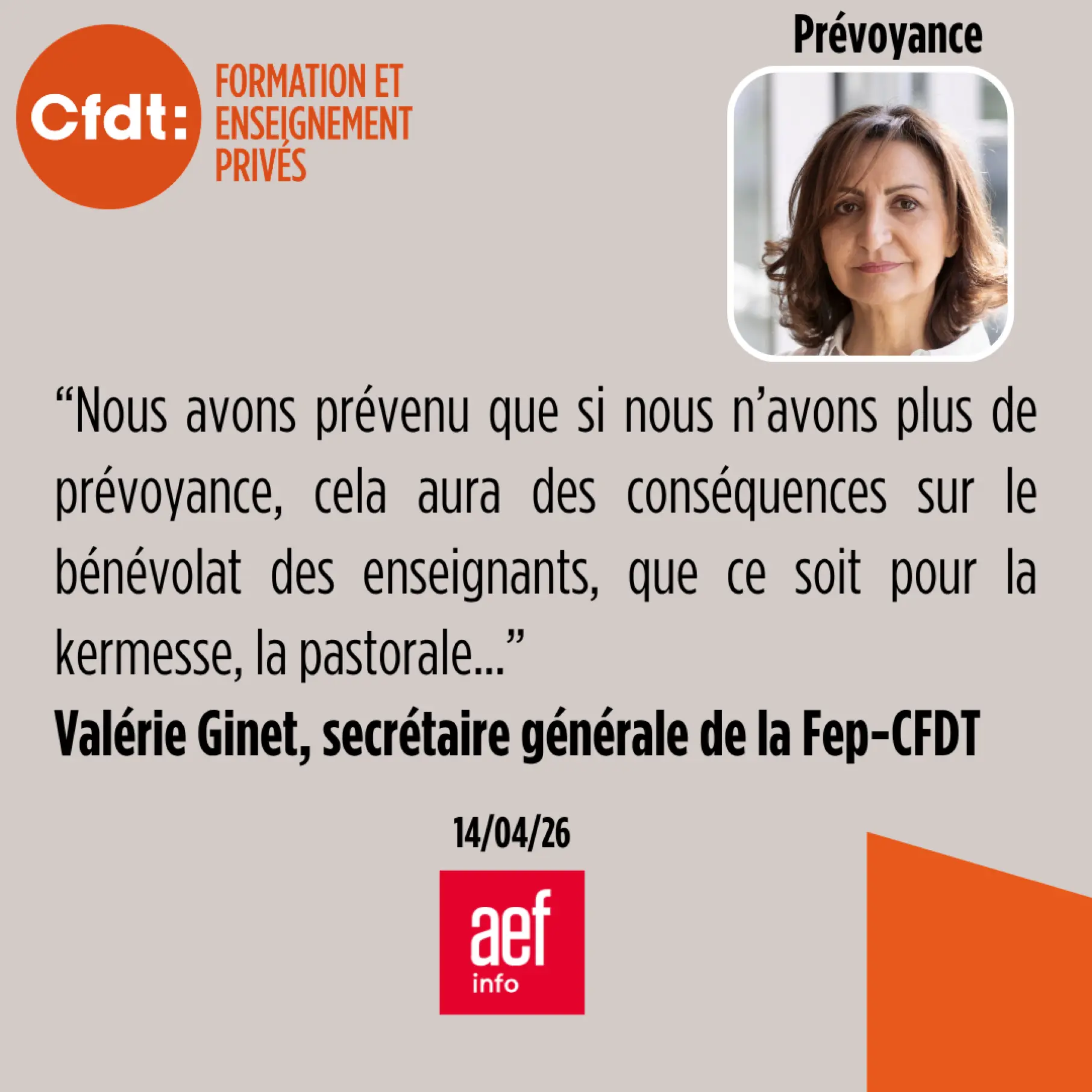 Le courrier envoyé par la Fnogec aux enseignants du privé , les appelant à se prononcer sur l'offre facultative de prévoyance par l'État , est "une provocation " , s'indigne la secrétaire générale de la Fep-CFDT auprès d'AEF info , le 9 avril 2026.