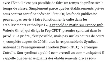 24-09-2025 - 20 minutes - Des "prières en classe"? Levée de boucliers après les propos de l'Enseignement catholique