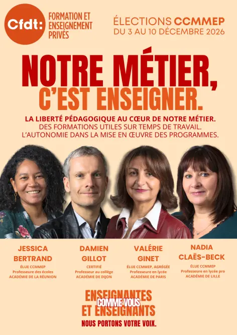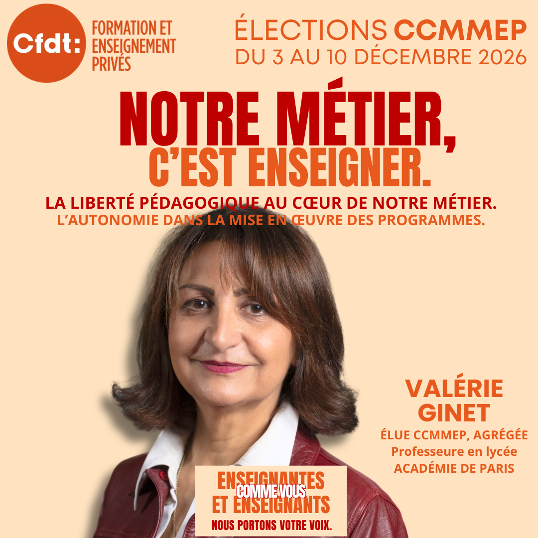 La liberté pédagogique, affirmée dans le Code de l’Education comme une prérogative de l’enseignant, est au centre de votre métier. En tant qu’expert, vous devez pouvoir mettre en place des situations d’apprentissage, des projets et des dispositifs adaptés à chaque groupe classe et à chaque profil d’élève dans le respect des programmes officiels. Vous devez aussi bénéficier de formations adaptées, sur temps de travail, répondant à vos besoins. Tout cela doit vous permettre de mettre en œuvre vos programmes en autonomie, et de vous épanouir au travail, dans l’intérêt des élèves, de votre établissement et du service public d’éducation. C’est en ce sens que travaillent pour vous les élu·e·s Fep-CFDT au CCMMEP et Conseil Supérieur de l’Education.