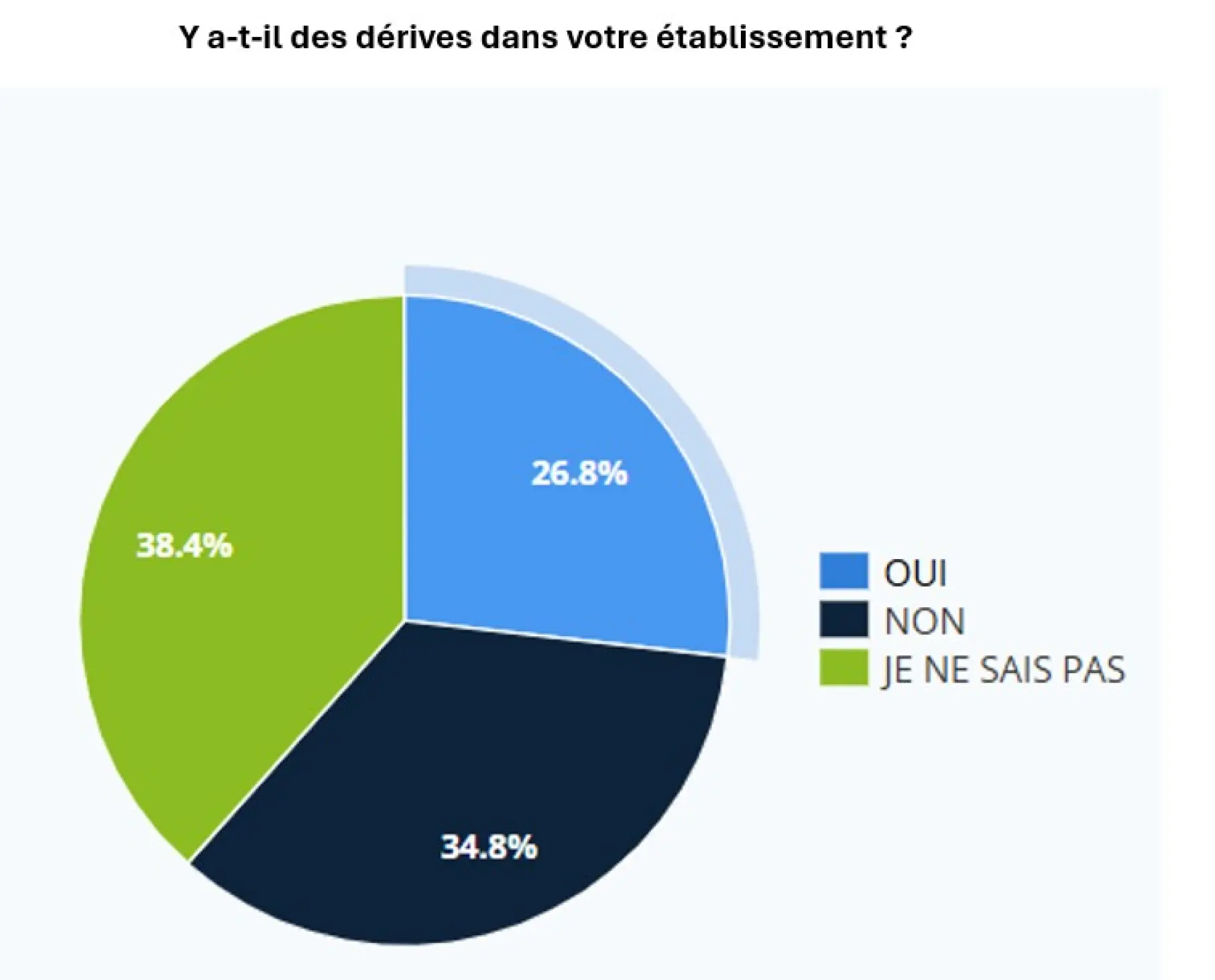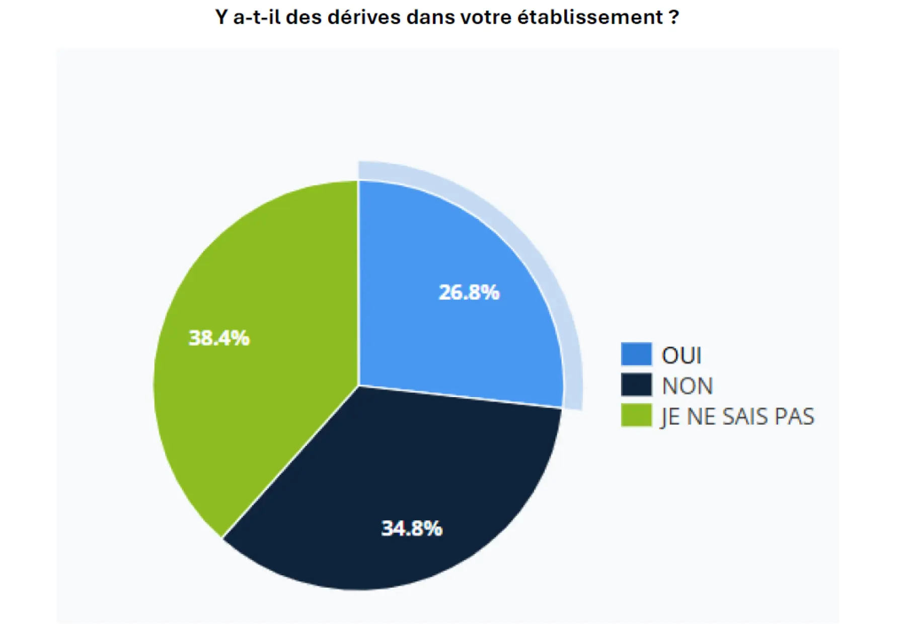 Parmi les collègues qui ont répondu à l’enquête diffusée par message sur les boîtes académiques entre la mi-novembre et la mi-janvier, la grande majorité (90%) a bien connaissance de l’existence des programmes. Mais à peine un tiers des répondants et répondantes déclarent qu’elles, eux ou quelqu’un de leur établissement a été formé à leur appropriation. Seul·e·s 42% des personnes disent que les séances ont été mises en place dans leur établissement. Si ces chiffres semblent conformes à ceux transmis par le ministre de l’Éducation nationale dans les médias, ce que Monsieur Geffray ne dit pas, c’est que lorsque l’Evar·s est mise en place, dans un quart des cas, des dérives sont observées.